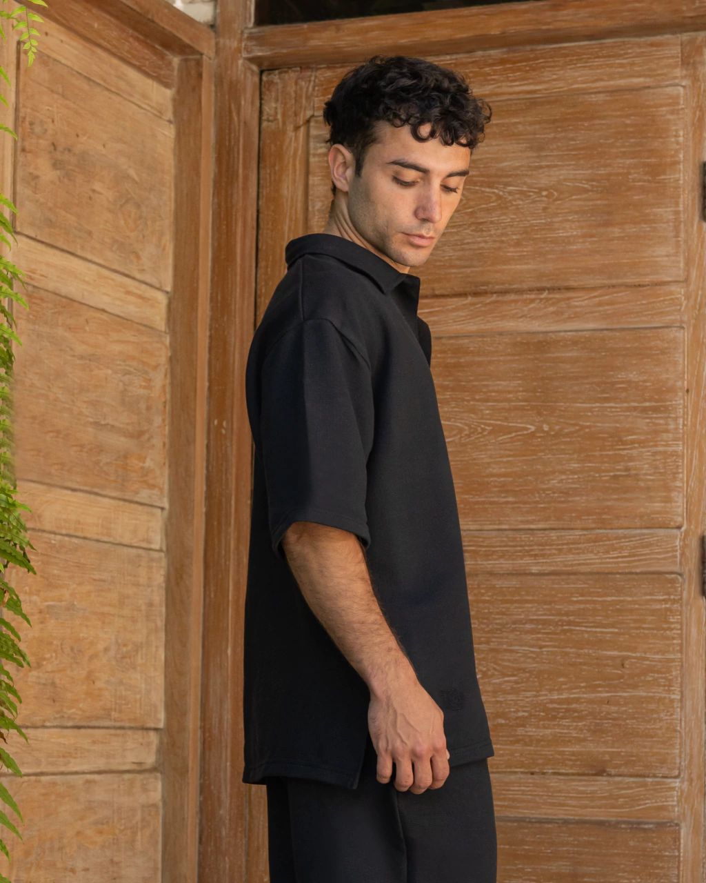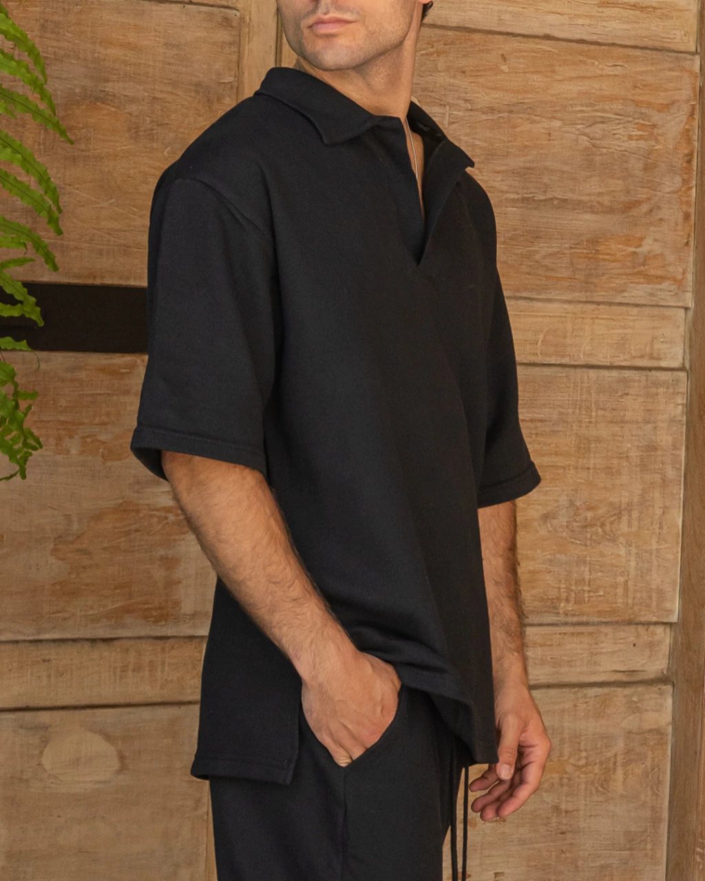 Descubrí la Chomba Rústico Piqué Negro, una prenda que redefine el estilo con su confección en algodón rústico piqué y un tramado único que realza cualquier look. Su corte oversize, hombros caídos y mangas largas hasta el codo logran un calce moderno y relajado, ideal para quienes buscan comodidad sin perder elegancia.