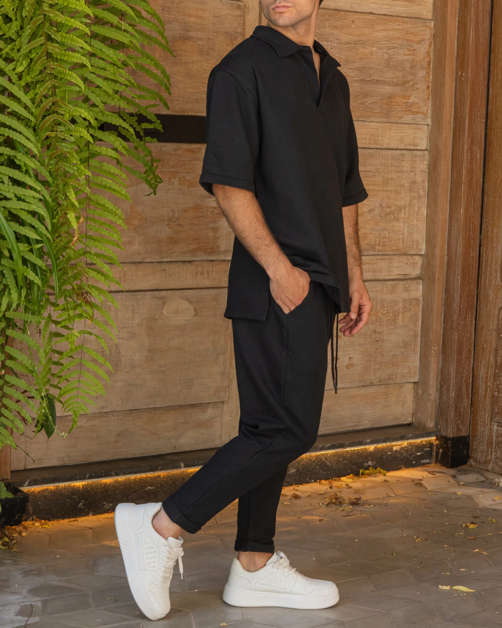 ¡Sumá estilo sin esfuerzo con el Pantalón Japan Rústico Piqué Negro! Hecho en algodón rústico piqué, este pantalón es la combinación ideal de comodidad y elegancia. Tiene todos los detalles que te gustan: bolsillos prácticos, cintura con elástico y cordón con punteras personalizadas, más la clásica falsa bragueta en el frente.