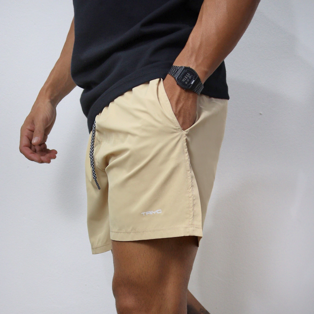 Short de baño en tela microfibra premium, de secado rápido y tacto suave. Posee bolsillos y sujetador. Cintura con elástico interno, y cordones bicolor con punteras selladas. Pequeño logo en nanotouch.